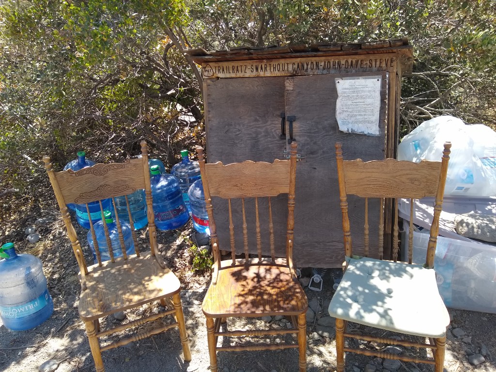 Friday, May 28th: Cajon Pass to Swarthout Cayon water cache–beautiful, large cache in a wooden cabinet in a pretty wash with huge yucca plants. We were glad to see the cache but had carried 5 liters of water each just in case (hikers will not depend on water caches if they can help it–just too risky).