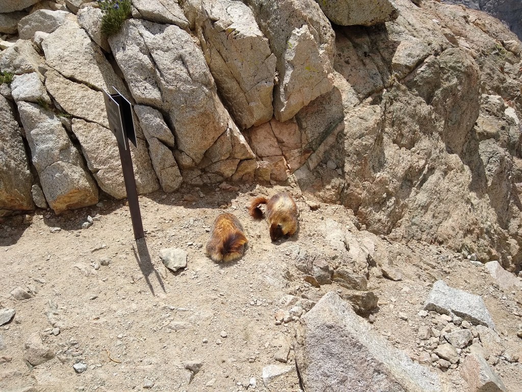 Hiked up Forester Pass–the highest elevation on the PCT at 13,200 ft. Saw marmots squabbling over the salt from some hiker’s celebratory pee at the top of the pass!